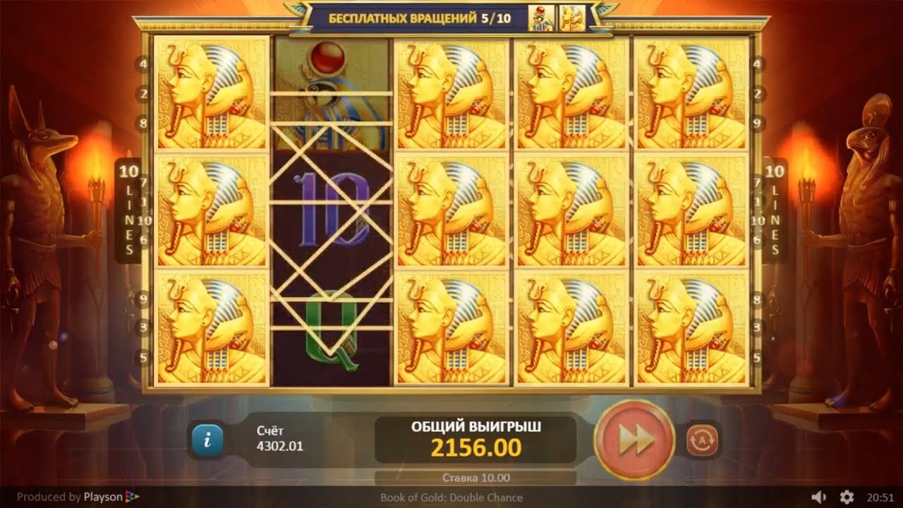 Book of Gold: Double Chance — это игровой автомат от известного провайдера Playson в мире азартных игр. Он предлагает игрокам уникальный сюжет и невероятные призы. Также игроки получают доступ к двум бонусным играм, которые могут значительно увеличить их выигрыш.