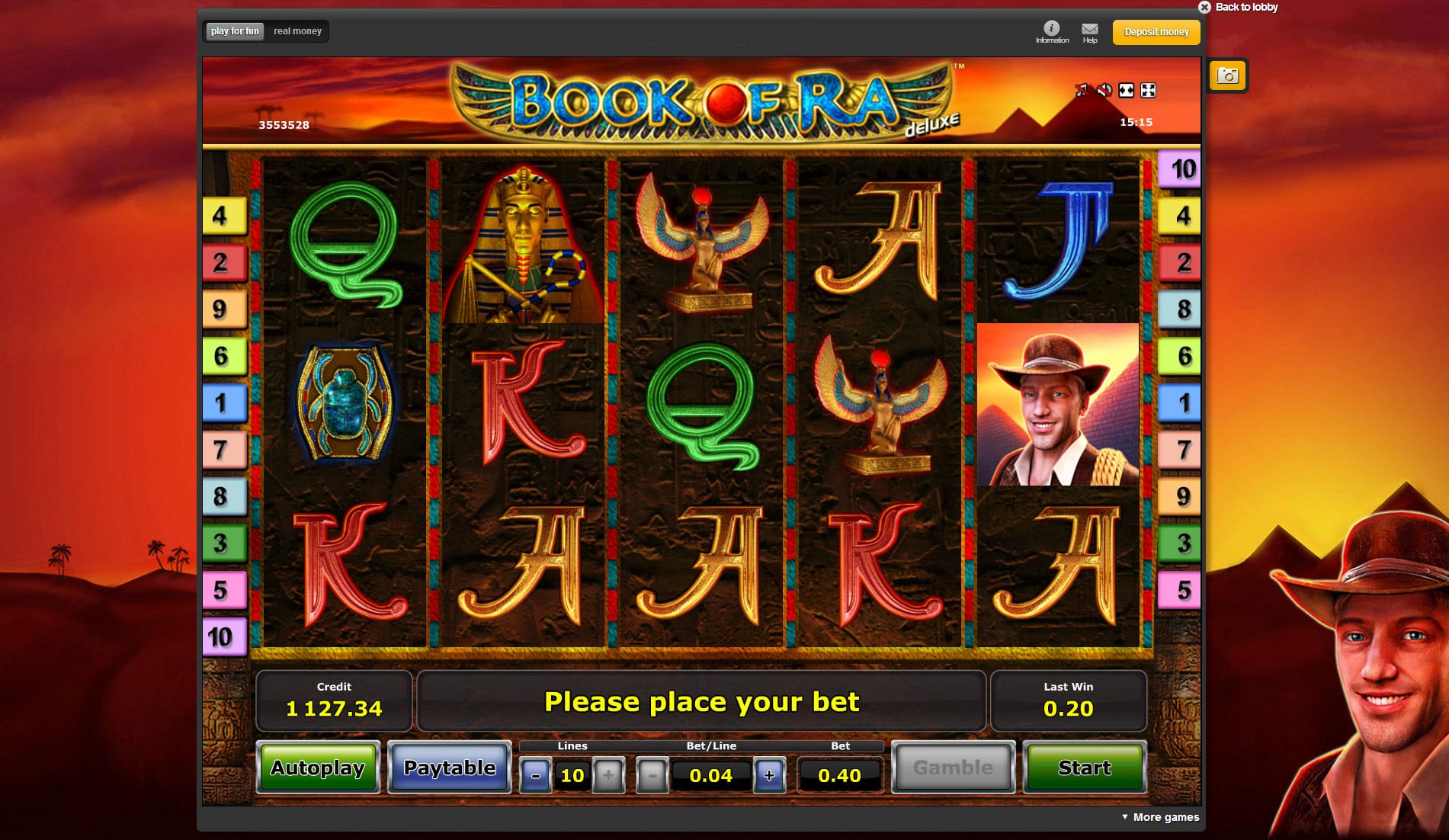 Слот Book of Ra Deluxe для онлайн-казино предлагает производитель Novomatic. Это невероятно популярный игровой автомат, который приносит игрокам разнообразие и необычные игровые впечатления. В игре используется известная приключенческая тематика, а также прекрасные графические эффекты и звуковые эффекты.