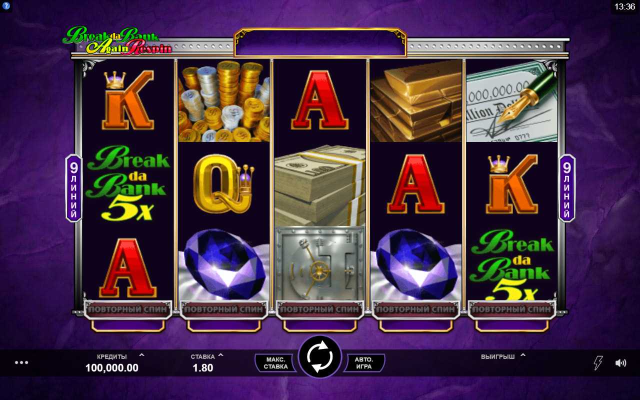 Break Da Bank Again позволяет наслаждаться игрой на максимальных ставках до 45 рублей, а минимальные ставки начинаются с 0,09 рублей.