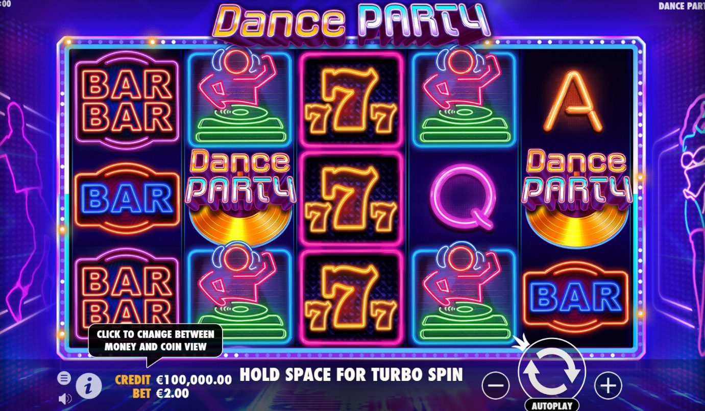 Dance Party представляет собой захватывающий игровой автомат от Pragmatic Play с 5 барабанами и 20 линиями. Игра будет привлекать игроков своими захватывающими цветами и забавными музыкальными элементами. Тема игры основана на танцах, а призовые функции добавляют еще больше захватывающего духа. Вы можете покрутить барабаны за минимальную ставку в 0.20 рублей. Но вы можете также поставить максимальную ставку в 50 рублей.