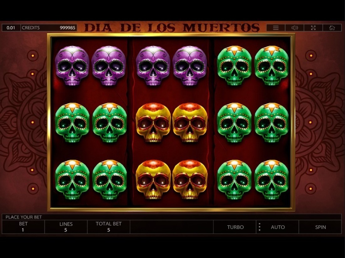 Игровой автомат Dia De Los Muertos от провайдера Endorphina имеет пять линий, три барабана и максимальную выплату в размере 3000x. Для начала игры необходимо сделать ставку от 10 до 1000 рублей.