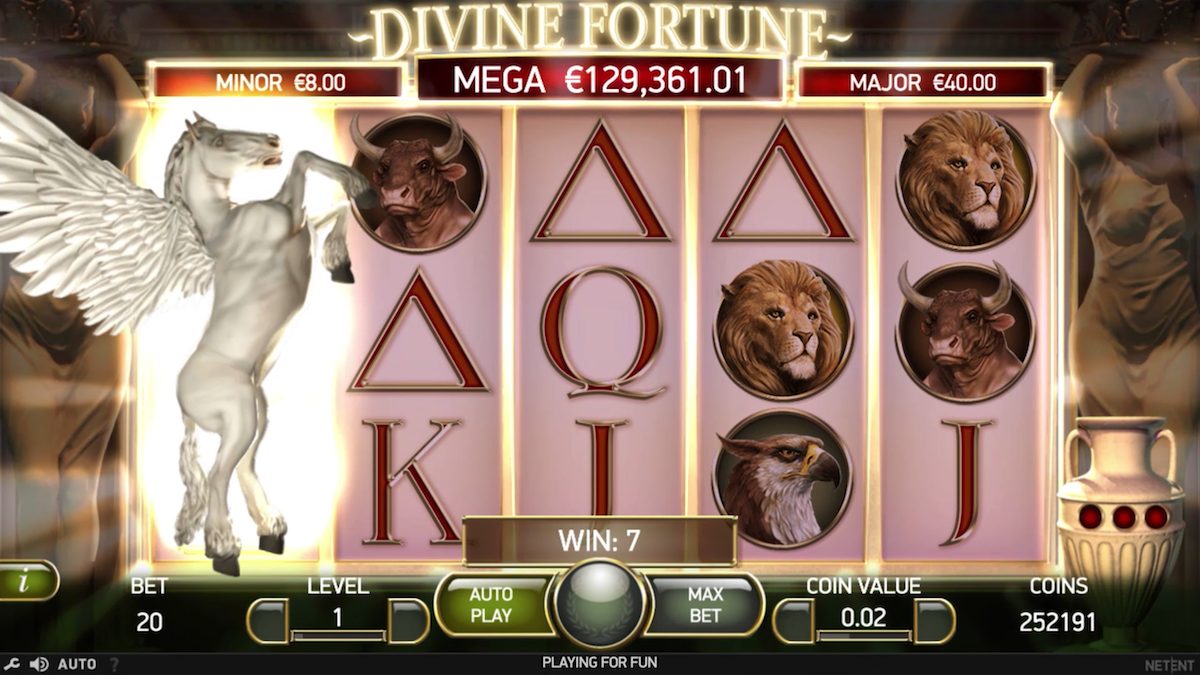 Divine Fortune – игровой автомат от популярного провайдера NetEnt. Он предлагает призовые комбинации с приятными цветами, интересными бонусными играми и многими интересными возможностями. В Divine Fortune используется механика выигрыша в 5 барабанов и 20 линий выплат. Минимальная ставка составляет 20 рублей на один спин, а максимальная ставка составляет 1000 рублей на один спин.
