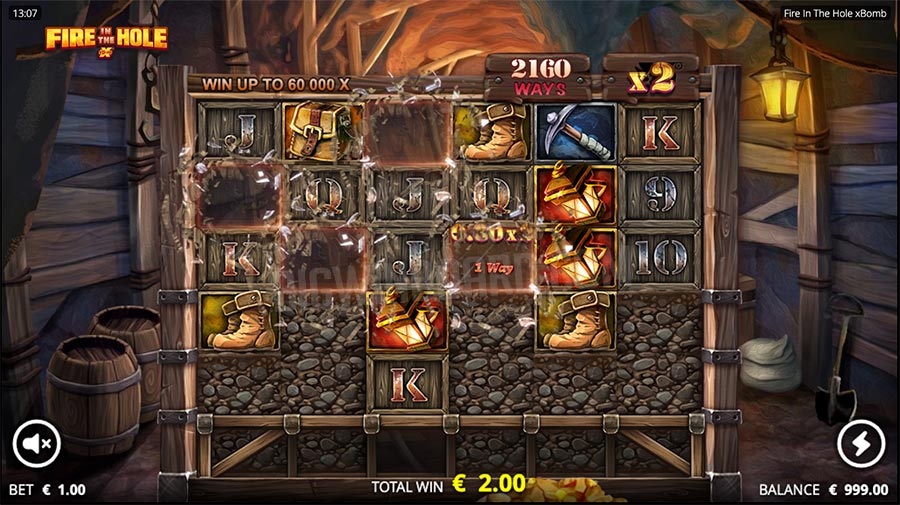 Fire In The Hole xBomb предлагает вам две потрясающие бонусные игры. Во-первых, при появлении на первом и пятом барабанах 3 скаттер-символов происходит активация бонусной игры Bombs Away. Этот бонус предлагает вам выбрать один из барабанов, который будет обезврежен и принесет дополнительные выигрыши. Во-вторых, в игре присутствует функция Nolimit Bonus. Эта функция активируется при появлении дикого символа на всех барабанах и предлагает игроку выбрать один из 8 бонусных элементов, чтобы получить дополнительные выигрыши.