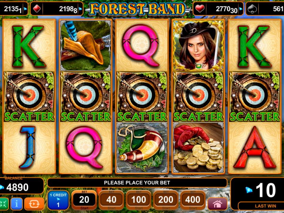 Forest Band представляет собой 5-барабанный игровой автомат с 10 активными линиями от провайдера EGT. Данная игра доступна для игры на деньги и в демо-режиме. В игре присутствуют бонусные раунды и специальные символы. Основной сюжет игры повествует о приключениях отважных рыцарей и лесных людей.
