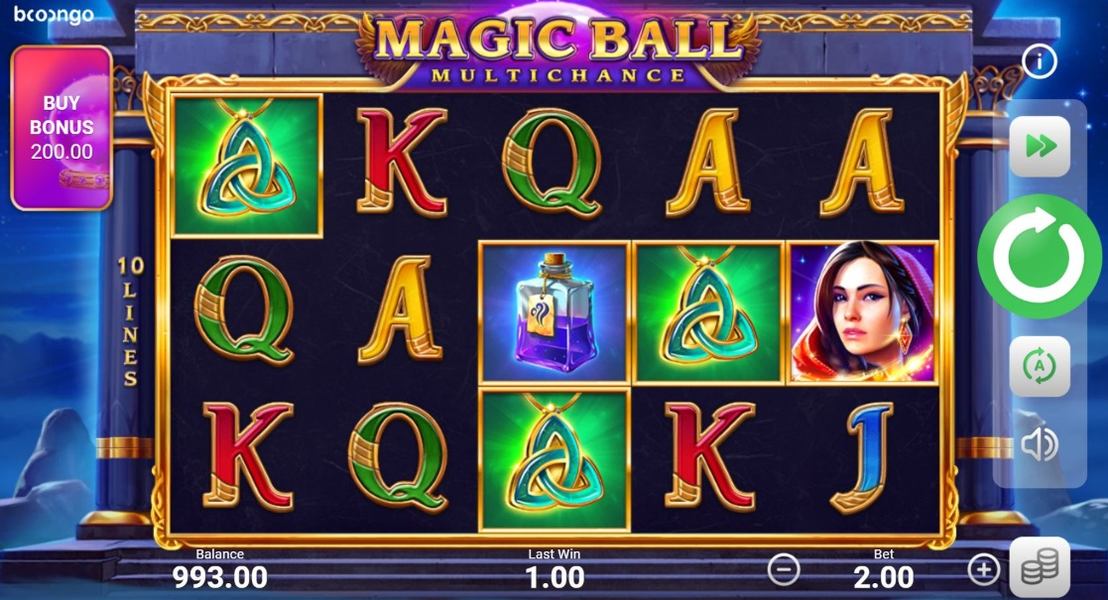 Игровой автомат Magic Ball MultiChance от провайдера Boongo представляет собой интерактивный игровой автомат с уникальными игровыми механиками. Игра состоит из 5 барабанов и 20 линий выплат. Для активации и получения вознаграждения игроку необходимо составить комбинацию из одного из символов, которая будет принести вознаграждение.