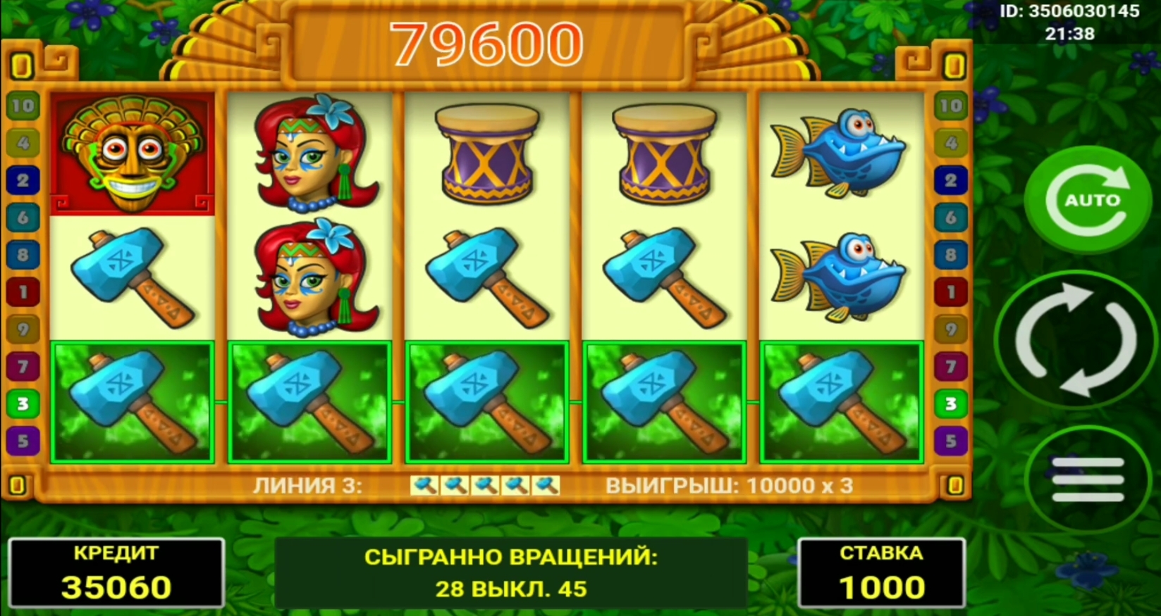 - Бонусная игра запускается, если на экране появляется три или более символов Идола.