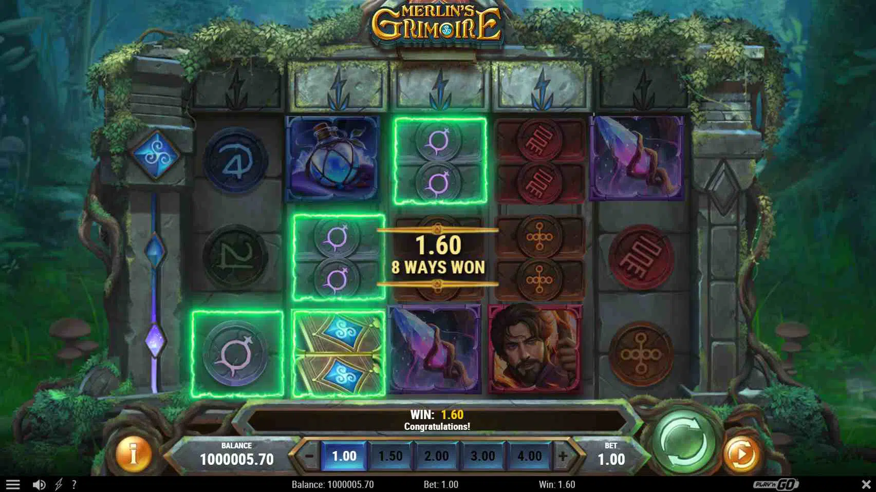 Merlin’s Grimoire – игровой автомат, выпущенный провайдером Play’n Go. В данной игре Вы сможете окунуться в мистический мир магии с ее загадочными силами и таинственными заклинаниями. Этот игровой автомат состоит из 5 барабанов и 10 линий выплат и предлагает вам много уникальных бонусов. Минимальная ставка составляет 10 рублей, а максимальная – 100 рублей.