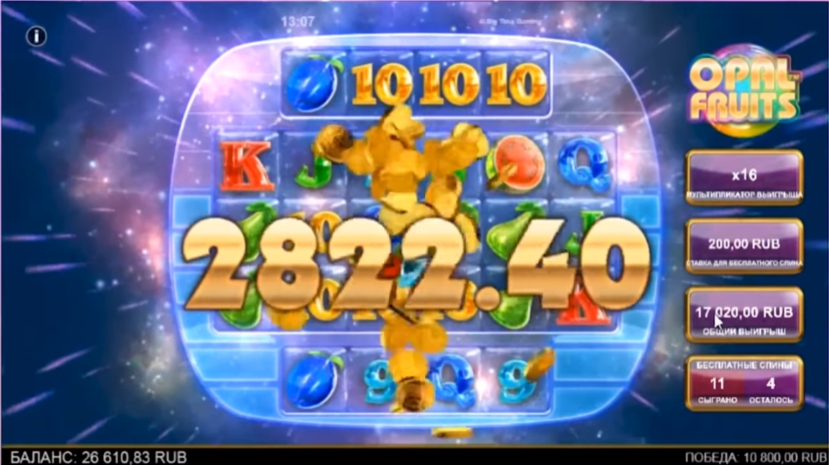 Крупные выигрыши (заносы) в автомате Opal Fruits
