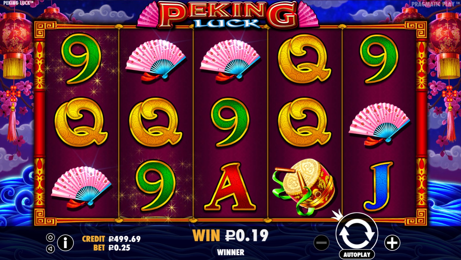Peking Luck имеет 5 барабанов, 25 линий выплат, максимальную ставку в 125 рублей и высокий процент отдачи (RTP) в 96.5%.