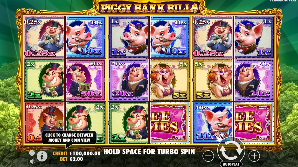 Игровой автомат Piggy Bank Bills произведен Pragmatic Play предлагает вам путешествие в домашнее детство и представляет дизайн, где каждый символ станет вашим другом. Игровой автомат имеет стандартный набор из шести символов и двух бонусных, включая авторежим и бесплатные вращения.