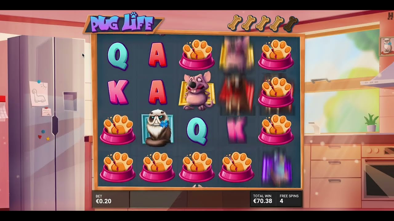 Pug Life предлагает игрокам процесс игры на 5 барабанах и 20 линиях. Минимальная ставка составляет 25 рублей, а максимальная достигает 1.000 рублей.