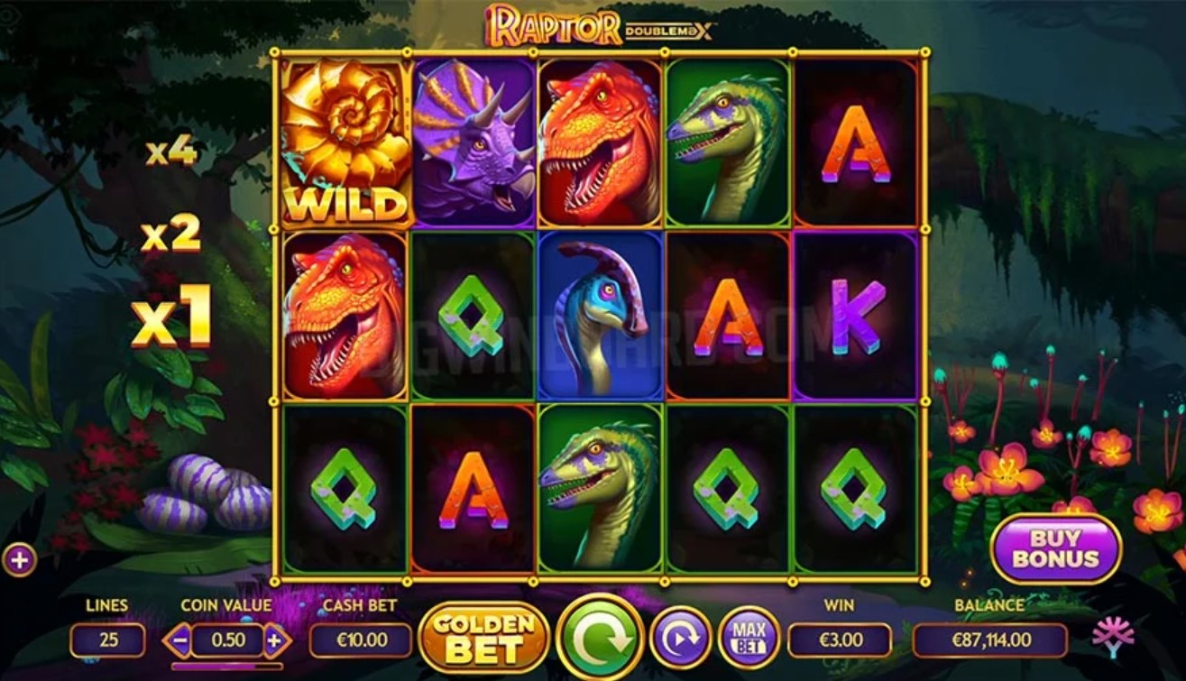 Raptor Doublemax предлагает игрокам приятный и захватывающий дизайн и достаточно высокую отдачу, что является одним из главных преимуществ игры.