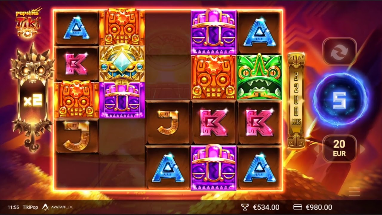 TikiPop – это игровой слот с пятью барабанами и 20 платежными линиями. Для того, чтобы начать игру, игрок должен нажать кнопку «Старт». В игре доступны такие бонусные функции, как бесплатные вращения, скаттеры и бонусные игры. За каждый спин игрок может выиграть до 1000 рублей.
