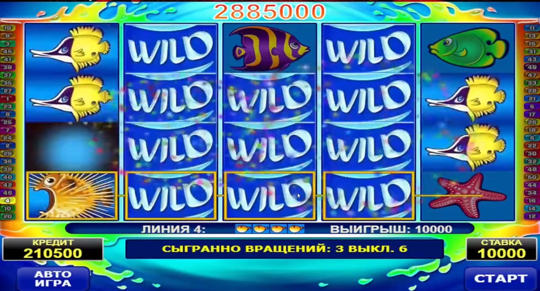 - Различные виды морских животных, А, К, Q, J — являются высокооплачиваемыми и низкооплачиваемыми символами соответственно.