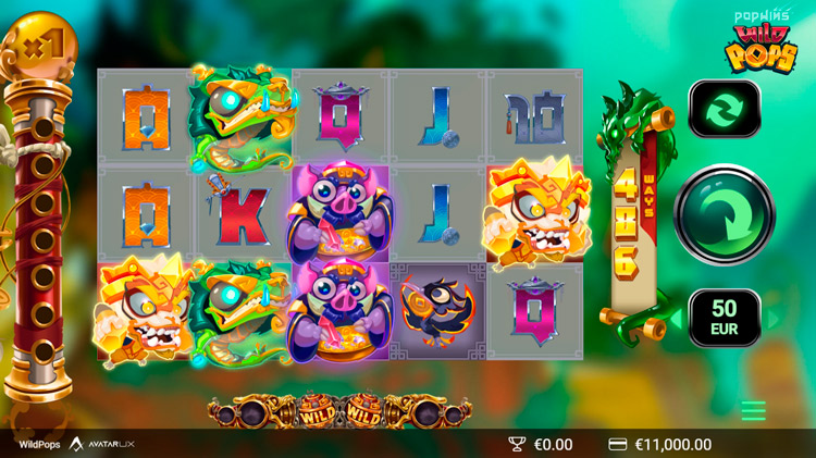 WildPops имеет стандартную для игрового автомата структуру с 5 барабанами и 3 рядами. Цель игры — выпадение символов в одной линии. Чтобы начать играть, нужно выбрать ставку и нажать кнопку «Старт». В игре присутствуют два дополнительных режима: автоматический и быстрый режим.